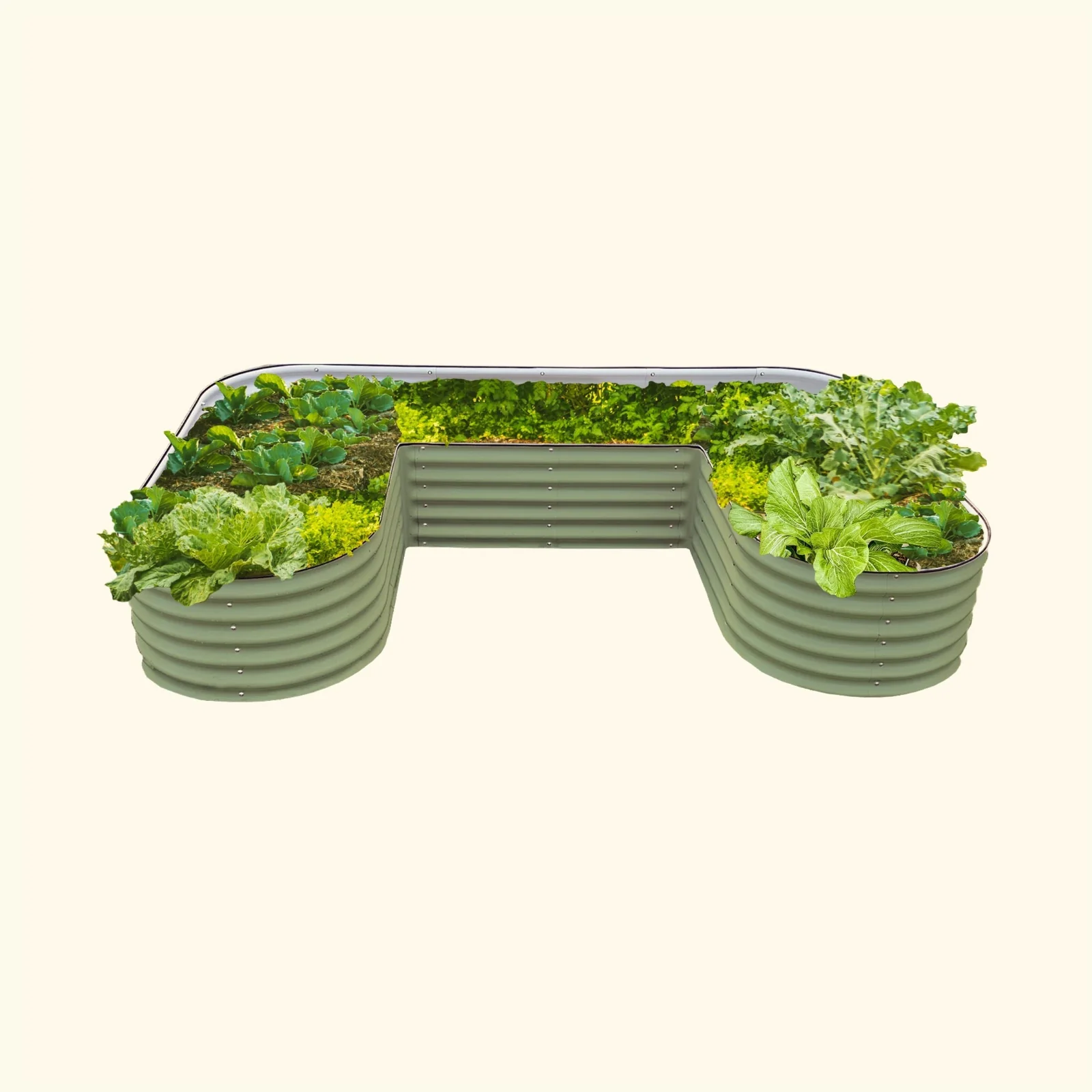 Create an efficient, accessible garden layout with this 17-inch tall U-shaped raised garden bed kit, designed to wrap around the gardener for easy reach and comfortable planting. The open U-shaped configuration provides convenient access to plants from multiple sides while maximizing usable growing space.